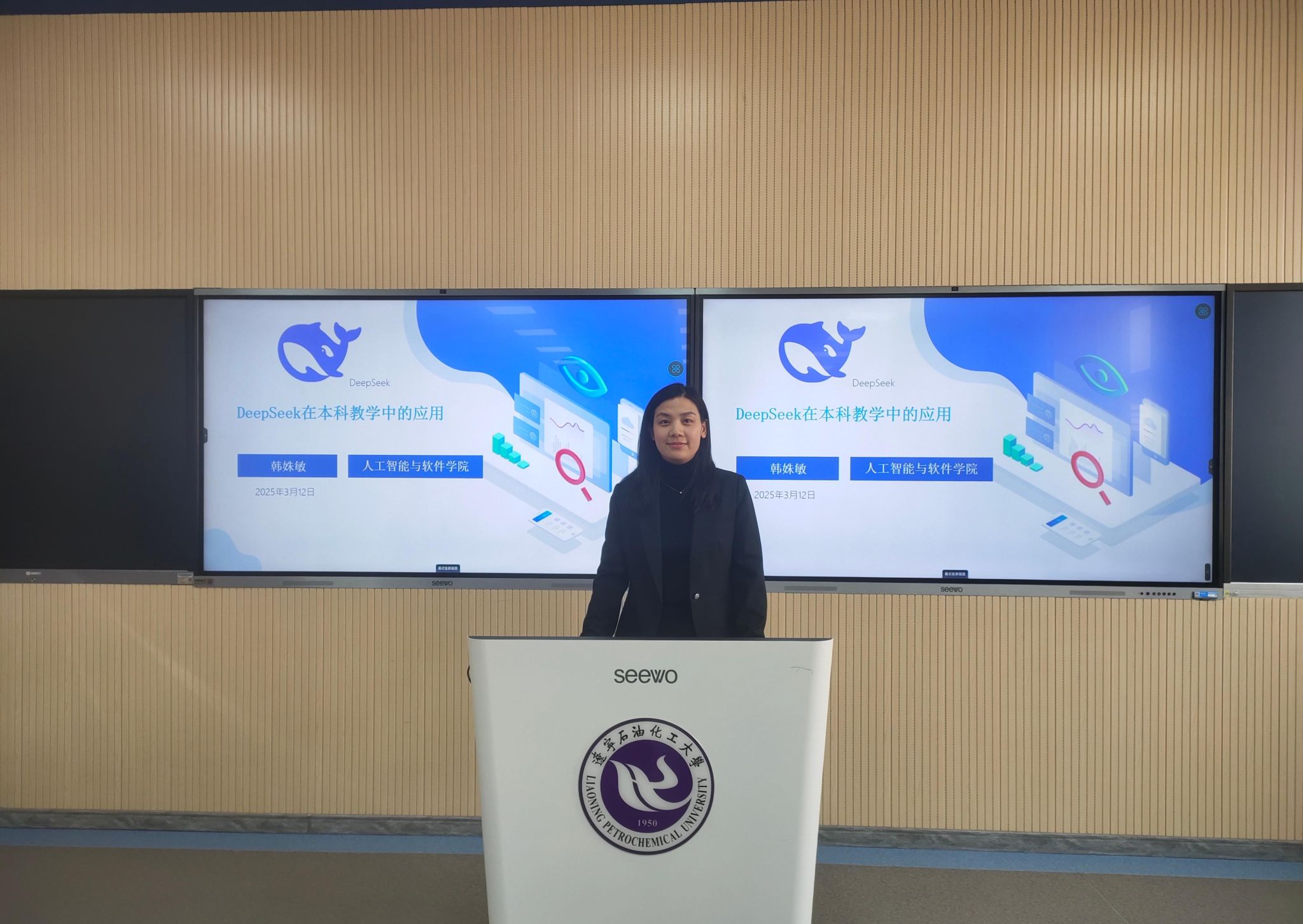 研讨会分为“理论学习和实践应用”“分组研讨”两个环节。在第一个环节,人工智能与软件学院副院长韩姝敏以“DeepSeek在本科教学中的应用”为题,从“人工智能发展简史、人工智能思维、人工智能的前沿、AIGC应用与实践”四个方面向参会教师做了报告。韩姝敏简要介绍了人工智能的诞生历史、发展过程、什么是DeepSeek、DeepSeek模型及其优势,并以自己亲身实践详细介绍了“如何将DeepSeek和其他工具结合起来优化教学方案与课程设计、编写工程案例、设计互动小程序、构建知识图谱、生成PPT、构建数字人”等应用案例,讲解内容丰富、可操作性强,为广大教师应用提供了极有价值的参考范例。