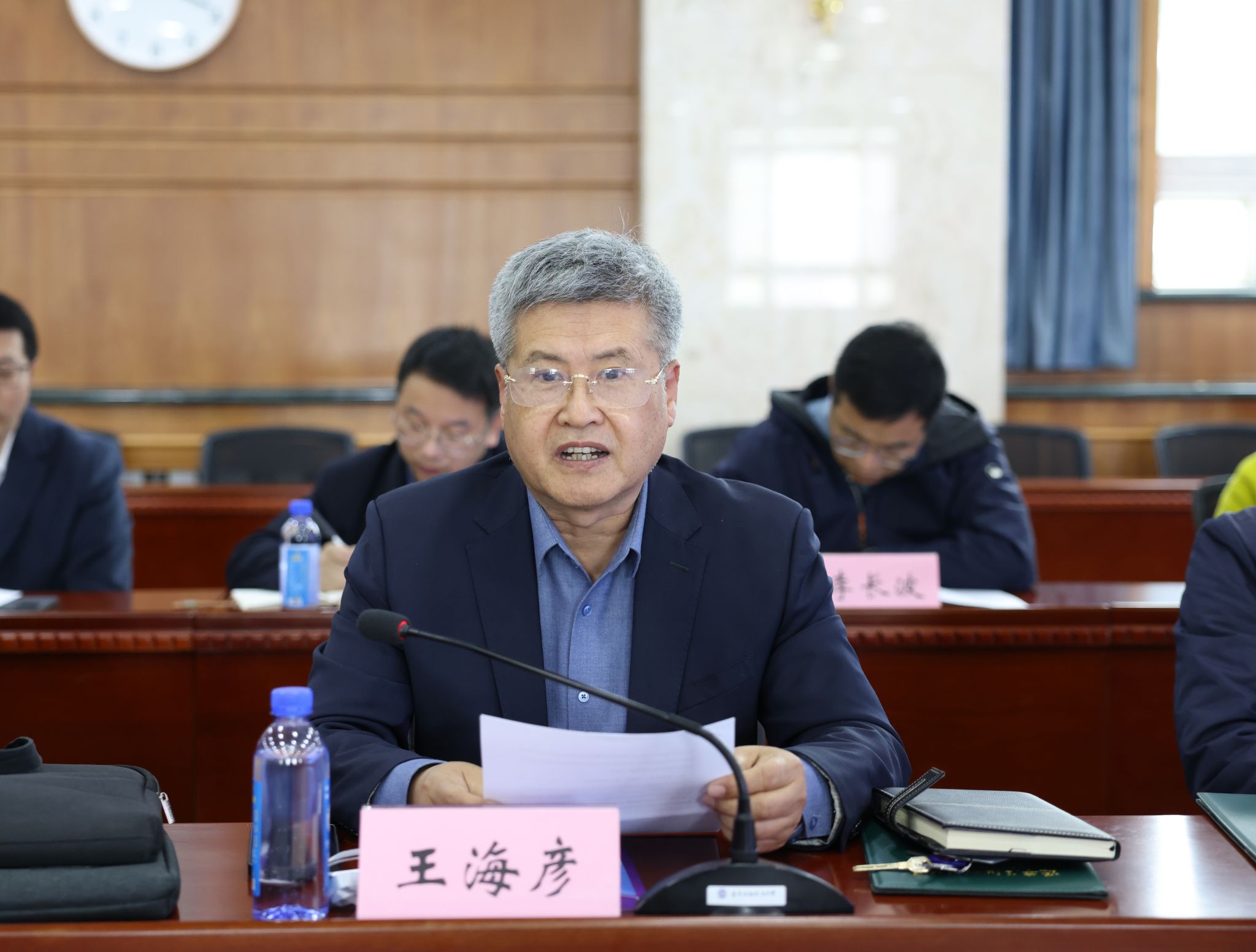 学校第十二届本科教学督导团团长王海彦代表新一届督导团发言。他表示,新一届本科教学督导团全体成员将以高度的责任感和专业精神,为学校教育教学质量提升贡献力量。未来将从四个方面扎实开展工作:一是实现教学督导全覆盖,重点加强课堂教学、实践教学和教学文档的质量监控;二是加强业务学习,定期组织专题培训,提升督导团队专业水平;三是构建质量监控闭环,加强与各部门的协同联动,建立问题反馈整改机制;四是坚持服务为本理念,以学生成长和教师发展为导向开展工作。他强调,今后将重点关注青年教师教学能力的提升,通过个性化指导和优秀案例推广,助力教师突破教学瓶颈。
