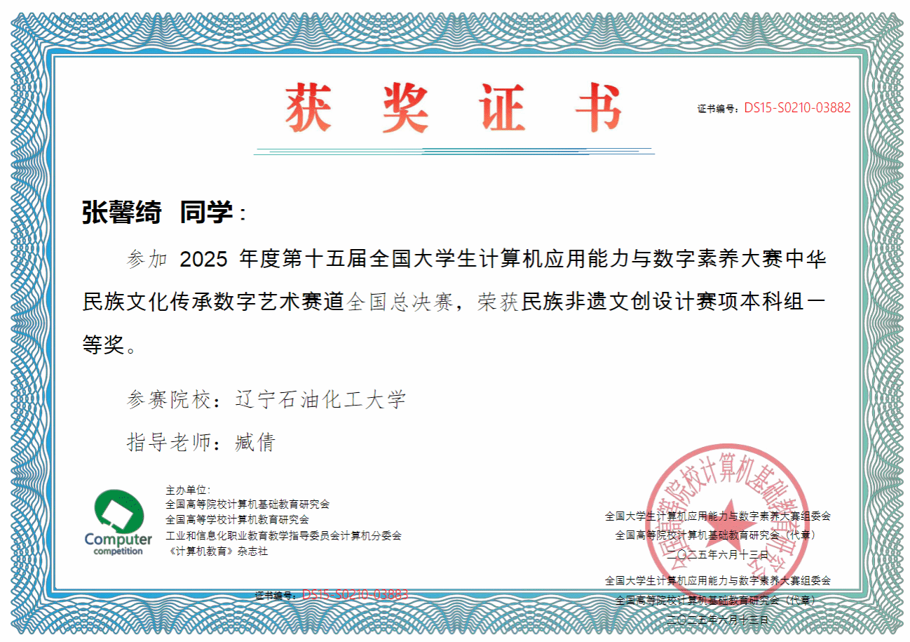 近日,由全国高等院校计算机基础教育研究会、全国高等学校计算机教育研究会、工业和信息化职业教育教学指导委员会计算机分委会、《计算机教育》杂志社共同主办,中央民族大学、首都经济贸易大学、北京金芥子国际教育咨询有限公司联合承办的第十五届全国大学生计算机应用能力与数字素养大赛的总决赛落下帷幕。我校学子通过人工智能与软件学院负责本赛事老师的精心组织参加了所有赛道相关赛项的角逐,在学校相关职能部门大力支持及全校相关指导老师认真辅导下,加之学生本人的不懈努力和认真备赛、参赛,2025年获奖数量及质量得到了大幅度提升。全校荣获个人赛项国家一等奖4项、二等奖3项、三等奖8项,个人赛项省级一等奖30项、二等奖61项、三等奖78项;荣获团体赛项国家一等奖2项、二等奖5项、三等奖5项。